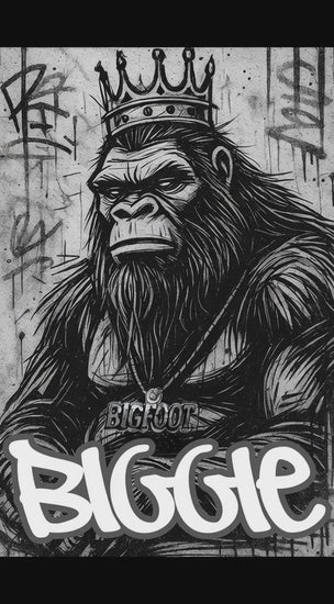Rule the wild with this fierce "Biggie" tee! A crowned Sasquatch looms large in graffiti grit on your choice of black or white—untamed street legend. "Spread love, it’s the Brooklyn way"
