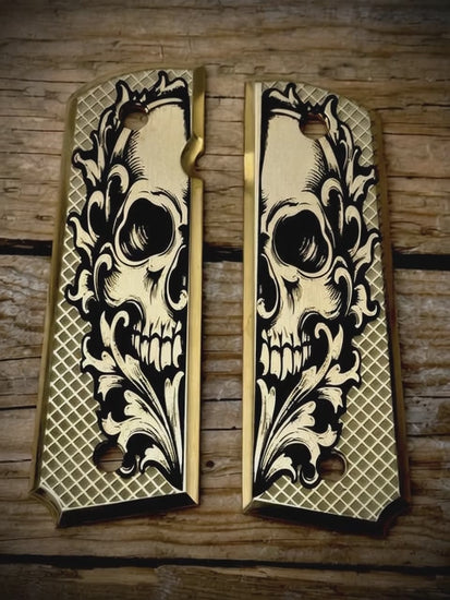 Custom Engraved Brass 1911 Skull Grips – Fearless Precision