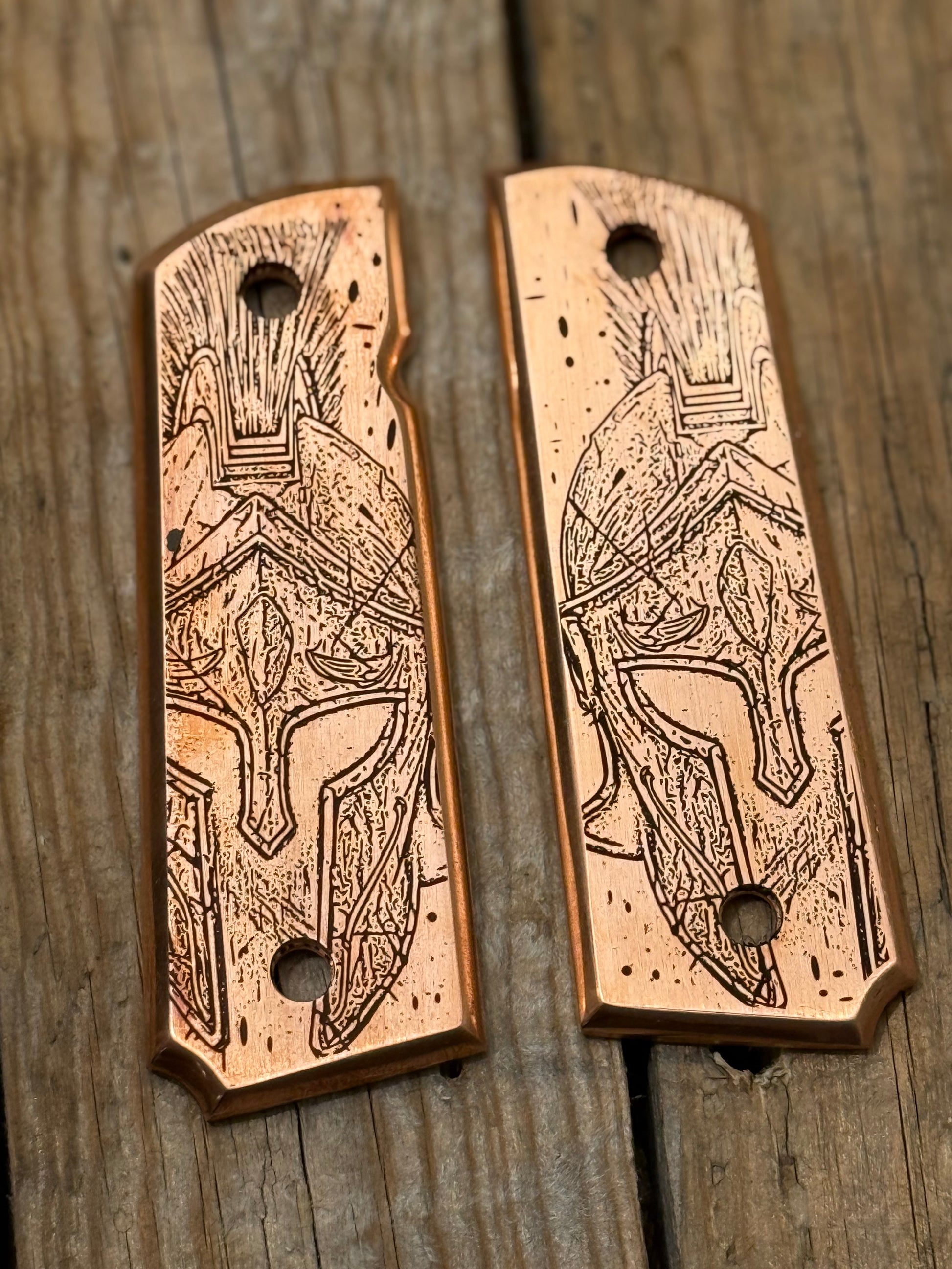 Custom Engraved Copper 1911 Spartan Grips – Warrior’s Edge