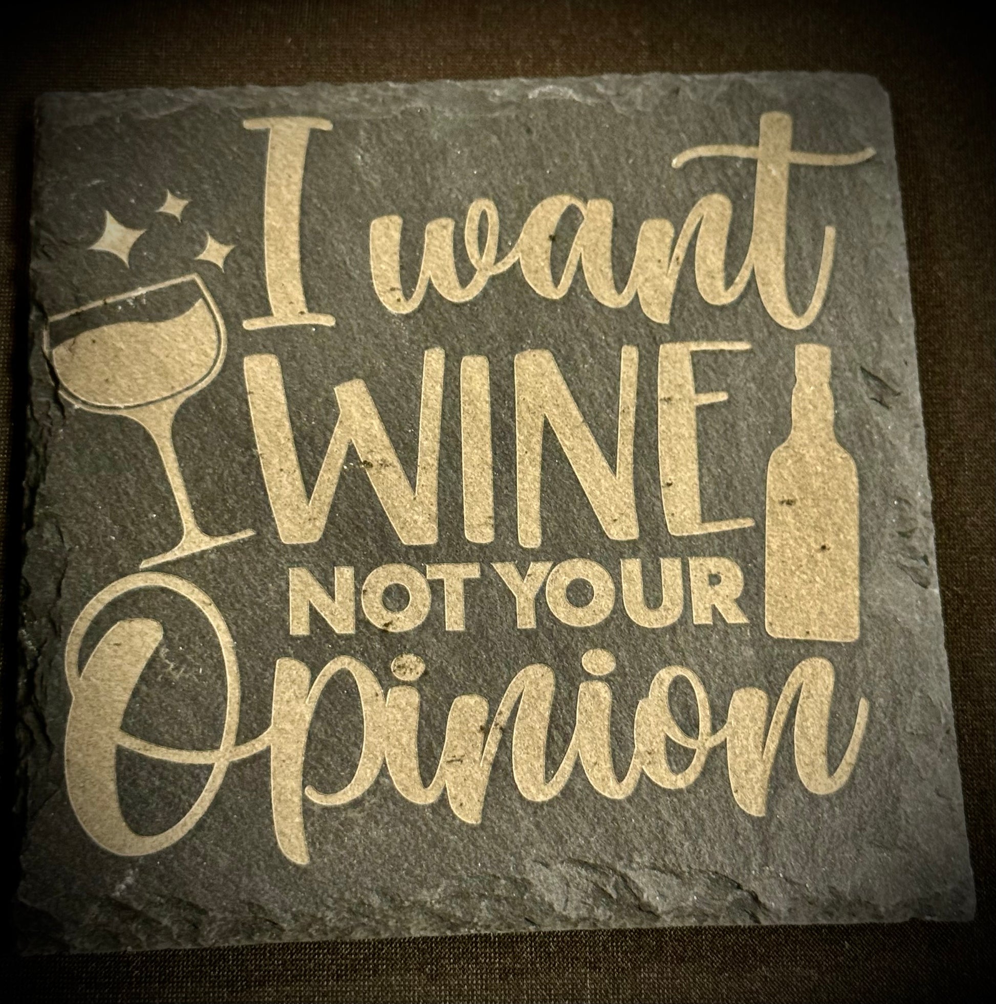 I Want Wine, Not Your Opinion Slate Coaster – Engraved Stone Art